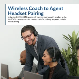 The patent-pending AC-204TR II enables BPOs, call centers, and contact centers to improve agent training by making it easier for coaches to connect to agent’s calls and offer guidance directly. It completely eliminates the need for Quick Disconnect (QD) headsets and offers a more modern, seamless solution that will reduce call times while providing better quality and more efficient training for agents.
